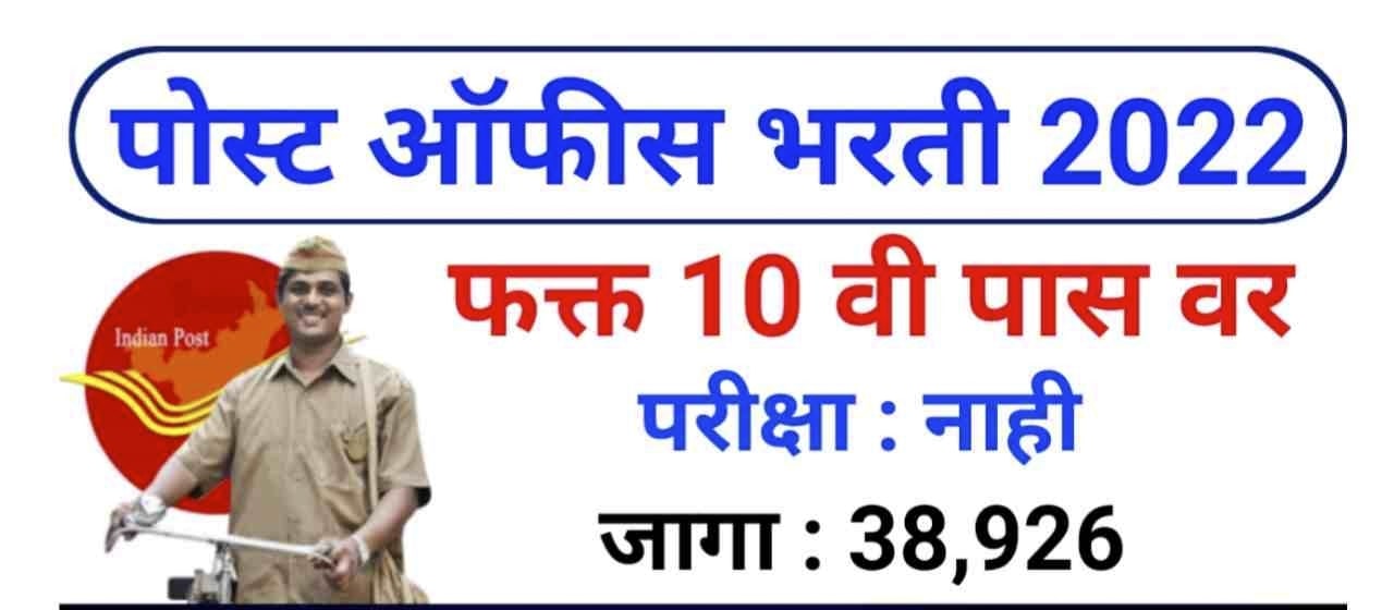 10 वी उत्तीर्णांना भारतीय पोस्ट विभागात नोकरीची संधी!! 38,926 पदांची नवीन भरती..